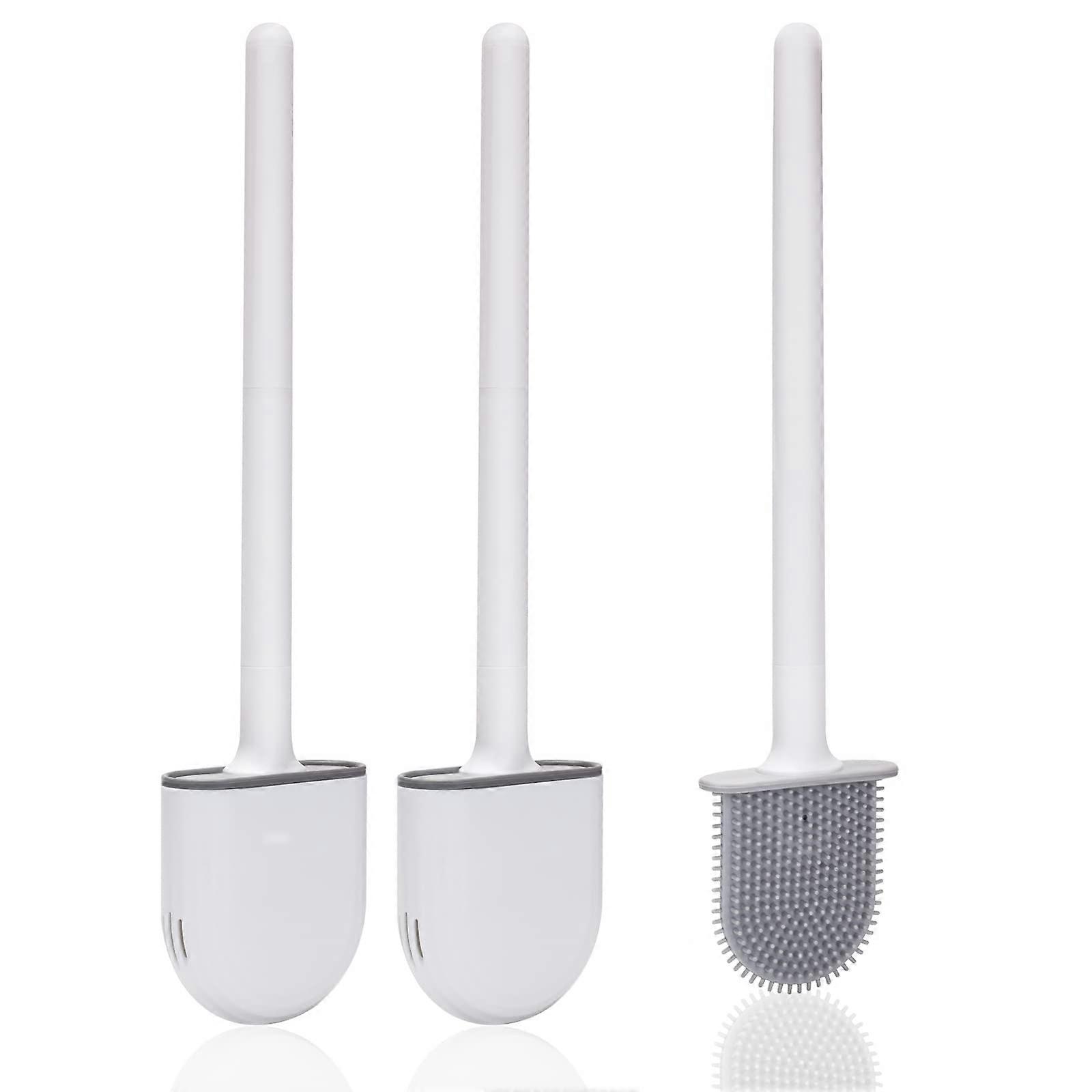 Silicone Toilet Brush for Bathroom (2 Pieces), Silicone Toilet Brush for Bathroom with Quick Drying, Quick Cleaning Toilet Brush Holder Set White 2