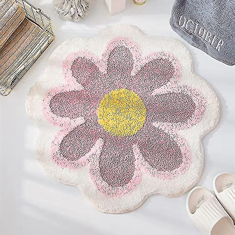 Soft to Step:the flower bathmat surface is made of polyester material,soft and comfortable,makes you feel like stepping on the clouds,giving you a cozy,fluffy,warm and soft experienceNon Slip and Safe:the back of the flower bath rug is made of high quality material,safe and non slip,perfect for slippery bathrooms,you don't have to worry that your kids or the elder may slip down;Please keep the bottom of mat dry,because water under a bath bat may cause it to slip[BATHROOM RUGS GREAT ABSORPTION]These comfortable Bathroom rug mats are made with special technology for quick absorption and quick drying. Bathroom Rugs Arrange your powder room to keep quiet and warm as much as possible.Bathroom Rugs The soft superfine fiber can absorb as much water as possible from wet feet. And the water will not stay on the surface of the bathroom matEasy to Care for:you can wash the mat gently with cold water by hand or put it into the washing machine for convenience,saving you much cleaning time and bringing you pleasant experience and comfortable feelingFeature Cute Appearance:the bathroom rug feature the cute flower appearance,interesting and funny,modern and stylish,can work well with shower curtains,bathroom signage and other decors,bringing energy and relaxation to your lifecolor:BlueMaterial:polyestersize:60 x 60cmPackage Contents:1 x Bath MatOnly the above package content, other products are not included.Note: Light reflection and different displays may cause the color of the item in the picture a little different from the real thing. The measurement allowed error is +/- 1-3cm.