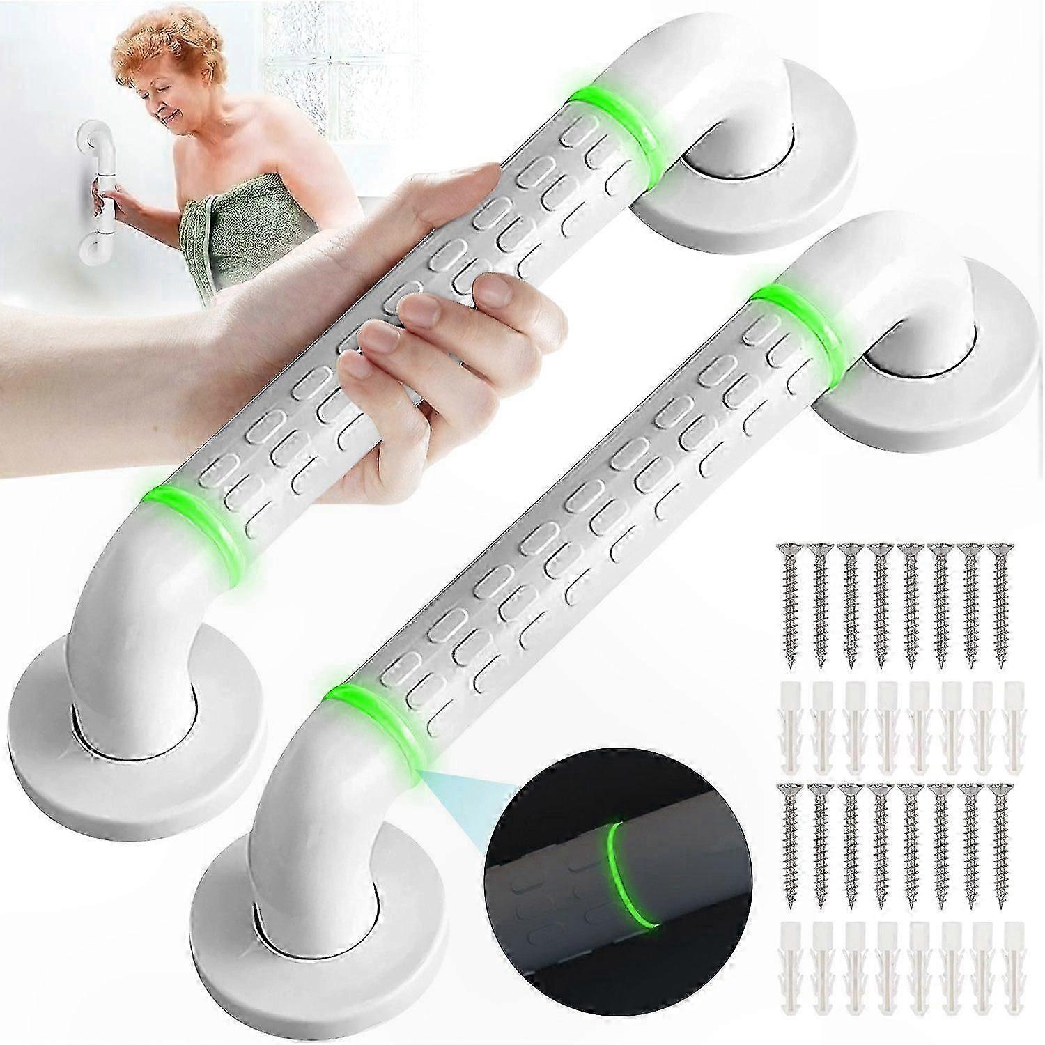 Non-slip ABS outer shell: The safety handle for the bathtub shower features a non-slip ABS outer shell that provides enhanced comfort and a secure grip. The handle surface includes non-slip textured particles to ensure a firm hold, even with wet hands.Glowing safety ring for night use: The integrated glow ring improves visibility in low light and enhances safety during nighttime use. The glow effect is activated by exposure to light sources, allowing for quick and safe assistance when needed. The eco-friendly fluorescent material offers long-lasting performance. (Note: If the ring does not glow upon arrival, place it in a well-lit area to absorb light before use.)Stable, non-slip base: The bathtub shower safety handle includes a wide, stable stainless steel base for secure and permanent installation. The reinforced base with four drill holes provides added stability and includes a protective plastic pad to prevent wall damage and abrasion.Ergonomic design: The grab bar features an extended, non-slip gripping surface for a secure hold, even with wet hands. Extended screws ensure a durable wall attachment, while rounded edges help reduce the risk of injury.Versatile use: This safety handle is suitable for use in bathrooms, showers, bathtubs, near toilets, stairs, or beside chairs. It functions as a reliable support bar and also serves as a towel holder, allowing you to hang towels, robes, or clothing for added convenience.Installation steps: 1. Clearly mark the desired mounting location. 2. Use a hammer drill to create holes at the marked spots. 3. Insert the expansion anchors into the holes. 4. Attach the black seal to the base plate and insert the screws. 5. Secure the base with screws and attach the decorative cover. 6. Installation is complete and ready for use.Permanent slip protection: The grab bar with ABS outer shell is durable, rustproof, and slip-resistant, offering a stable grip for increased bathroom safety.Luminous safety ring for night use: The glow-in-the-dark ring enhances visibility in darkness and provides added safety by absorbing ambient light to illuminate the area when needed.Safe to use: The handle supports up to 200 kg, is waterproof and corrosion-resistant. Its curved design ensures a secure grip, making it ideal for elderly users and children.Easy to install: The grab bar can be mounted at any angle with simple tools. The 40 cm handle is easy to grip and requires only a few components for secure wall installation.Versatile: Suitable for bathtubs, showers, toilets, and other areas, this safety handle also doubles as a towel holder, adding practical functionality to any bathroom.