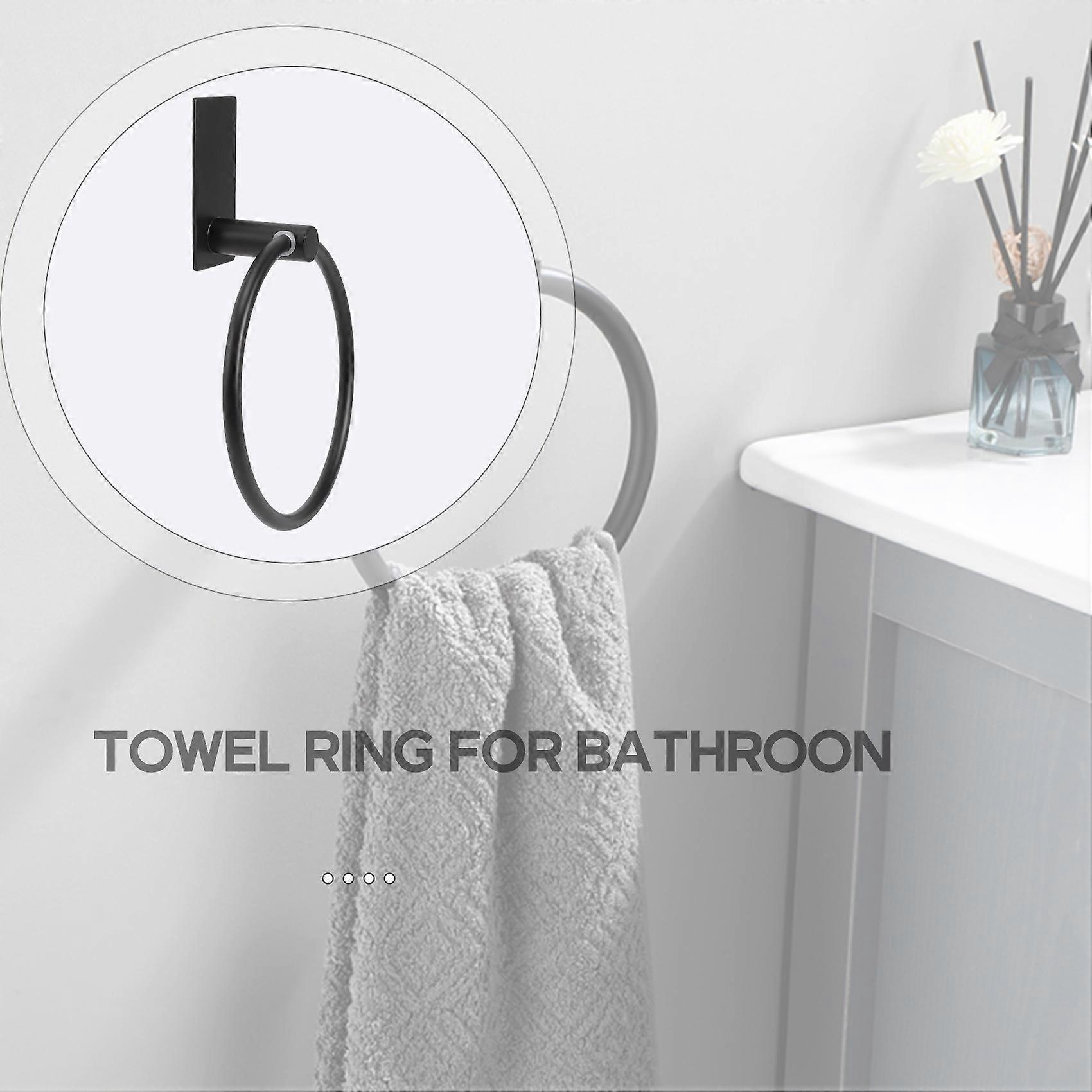 Self Adhesive Round Towel Rack for Bathroom, Stainless Steel Black