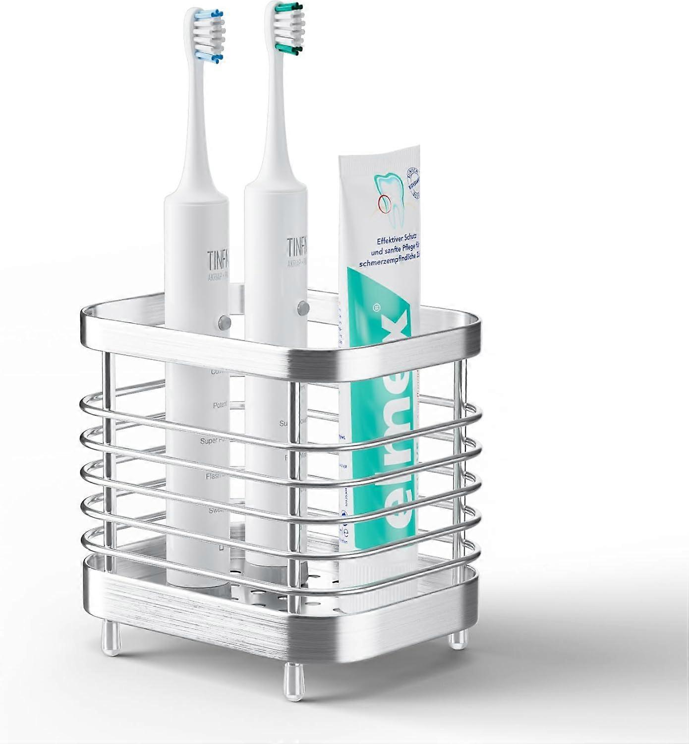 Electric Toothbrush Holder for Bathroom, Stainless Steel Toothpaste Organizer Storage Cup for Shower, Tooth Brushing Caddy Stand Tray for Countertop S