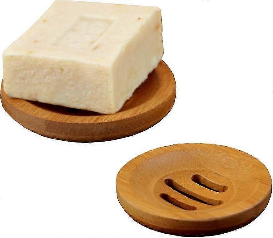 2Pcs Natural Wooden Bamboo Round Soap Dish Holder for Bathroom