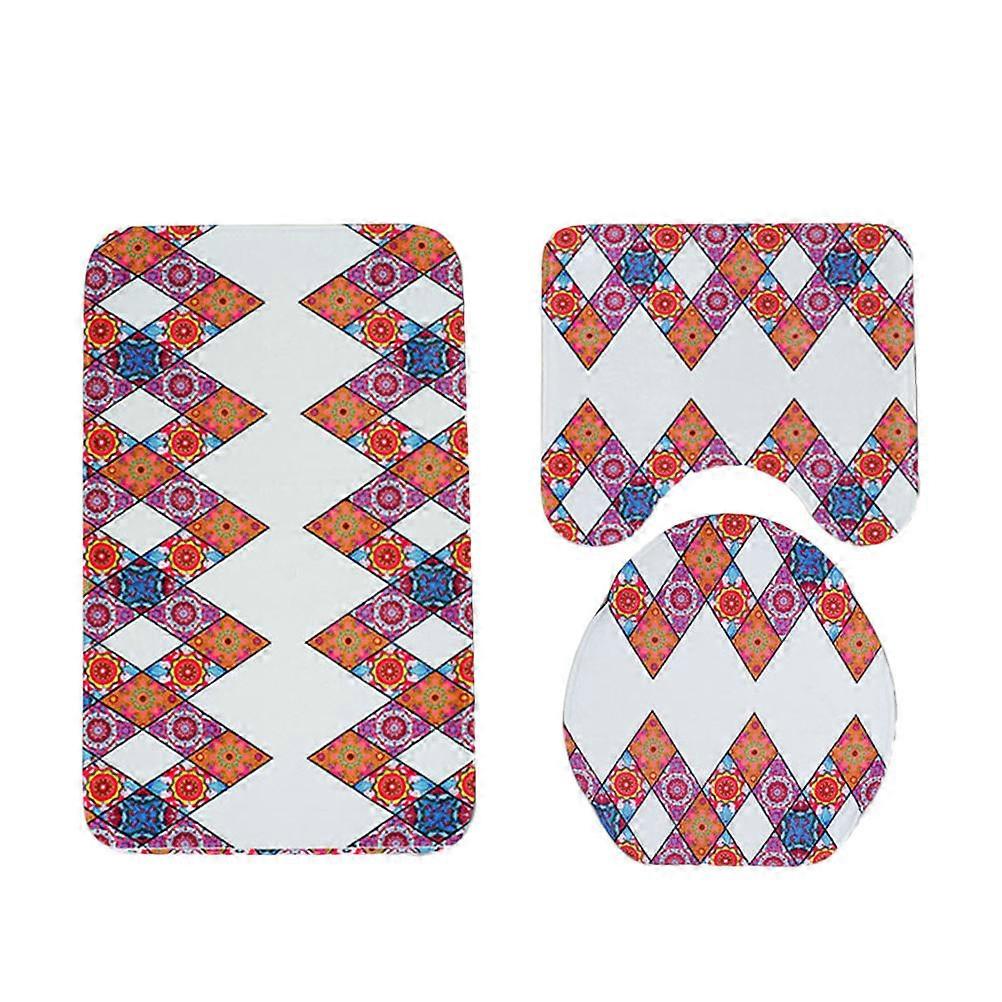 Bathroom Decor Bohemia Printing Toilet Floor Mat Set Water Absorption Multi-Colored 45x75cm 3-Piece