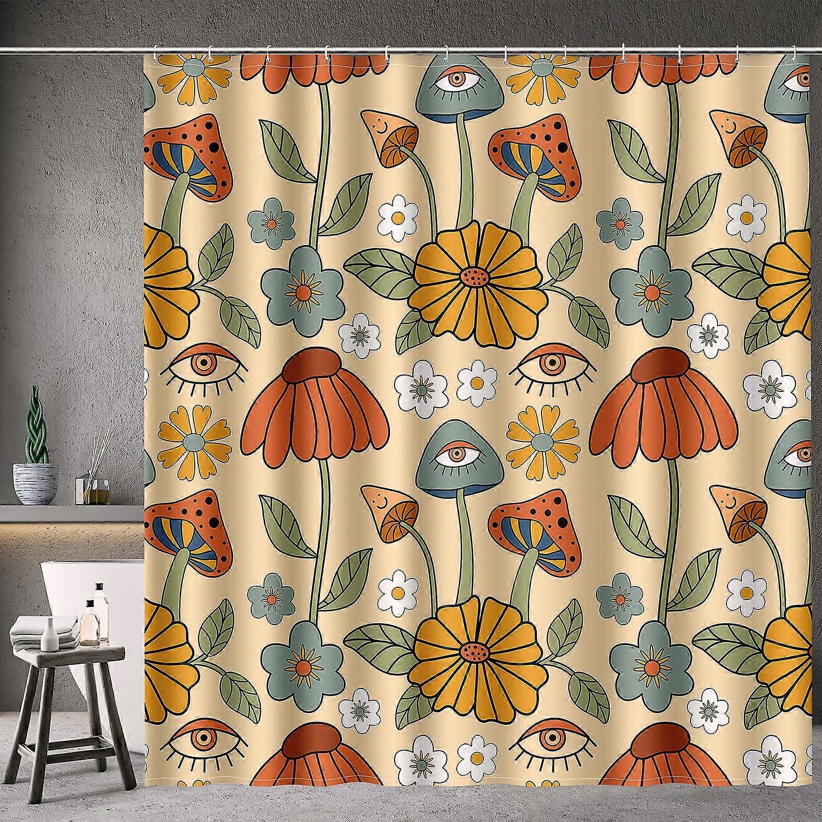 Boho Mushroom Floral Shower Curtains Pack for Bathroom Decor, 72"W x 72"L, Stylish Adult Design