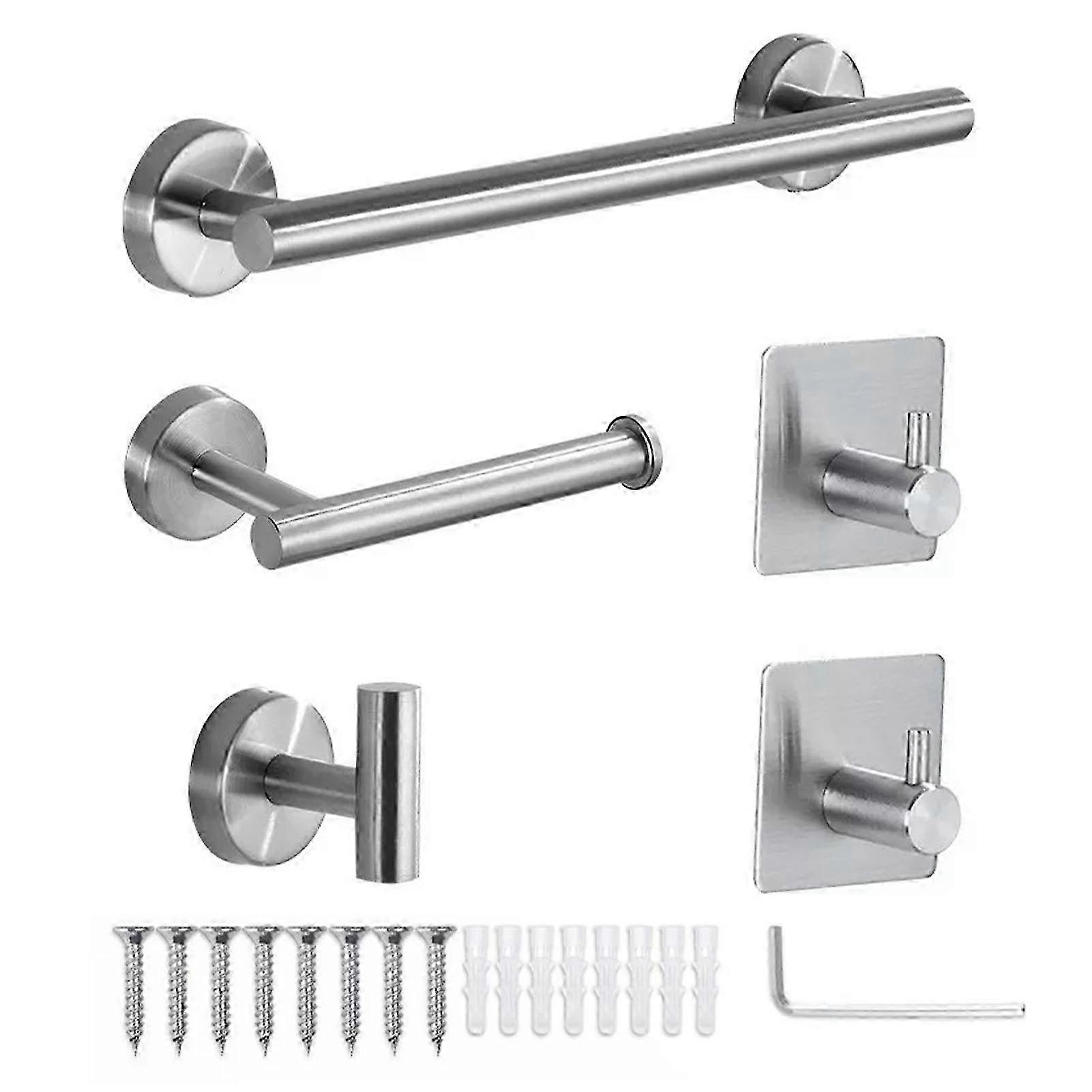 5-Piece Bathroom Set: Towel Rack, Paper Holder & Hooks - Silver