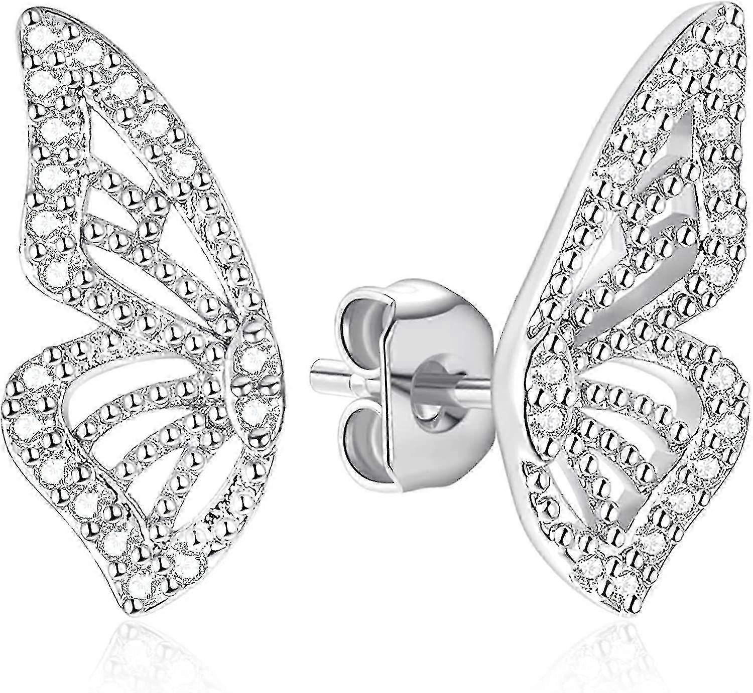 Butterfly Wing Stud Earrings 18k Gold Plated Simulated Diamond Silver Earrings for Women