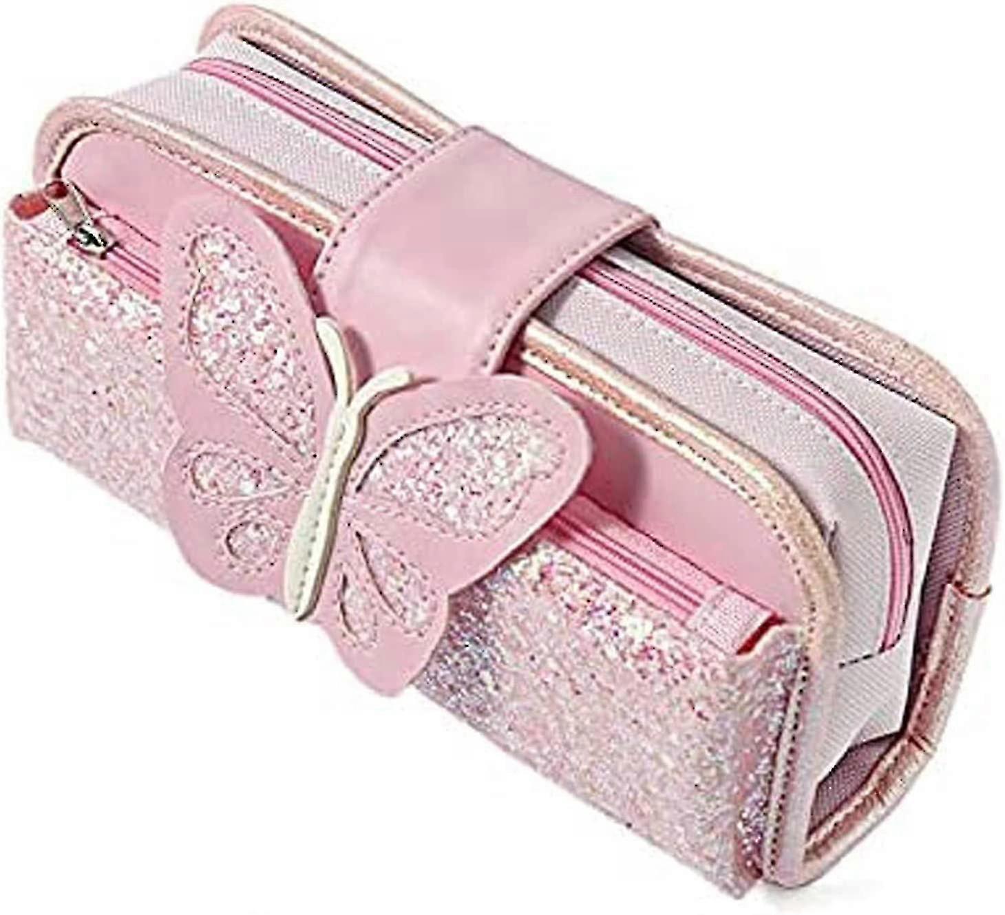 Butterfly Sequin Pencil Bag Double Zippers Large Capacity Stationery Bag (Purple) (2-CC) f54