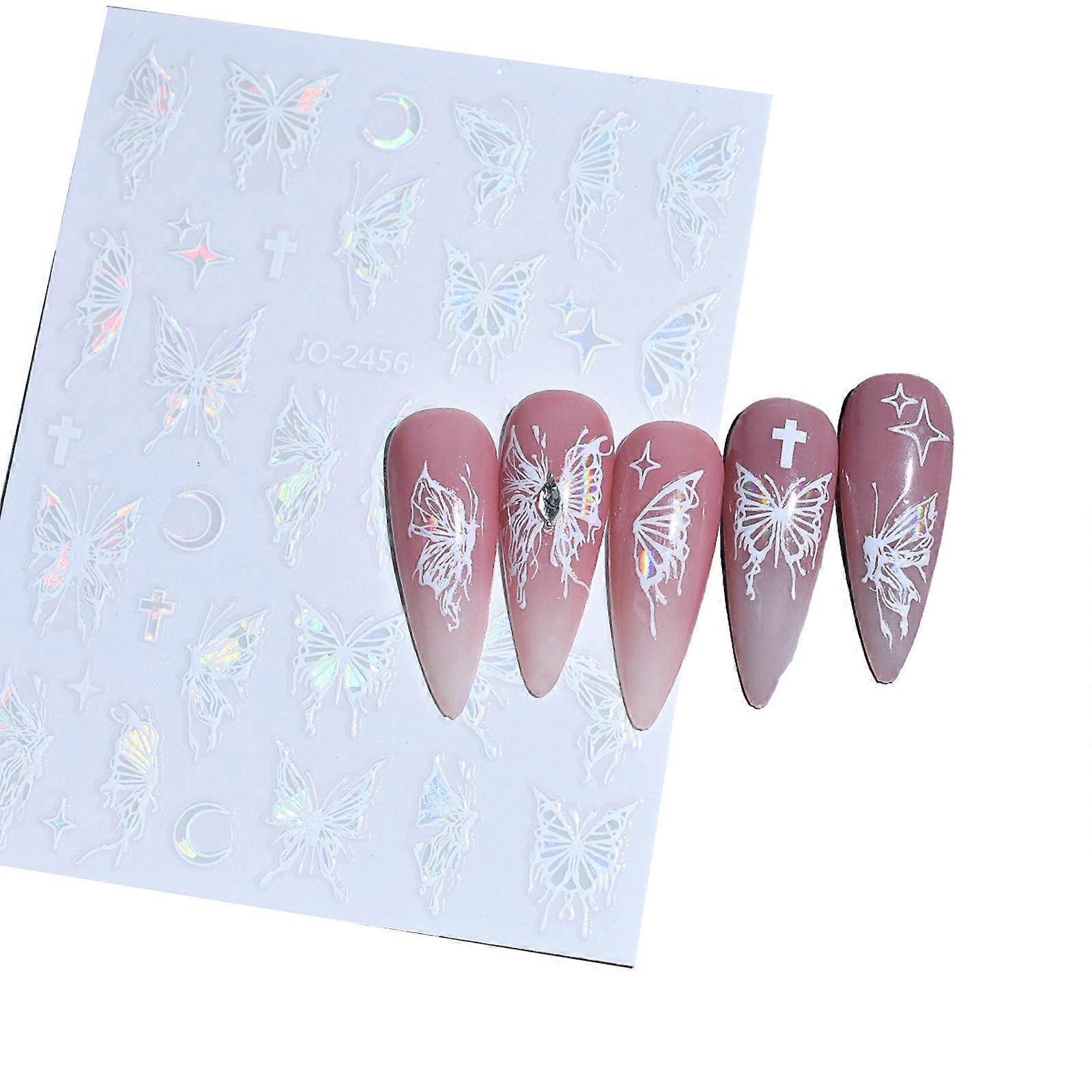 Butterfly Nail Sticker Decals DIY Creative Fake Nail Wraps Tips Nail Manicure Art Patchs Full Cover Nail Polish Sticker 2456 Aurora White