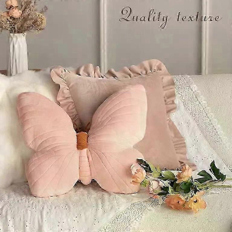 Butterfly Pillow Throwing Pad Short Plush Cushion Cute Girl Pink Toy for Bedroom Sofa Home Decoration Home Textile Cushion