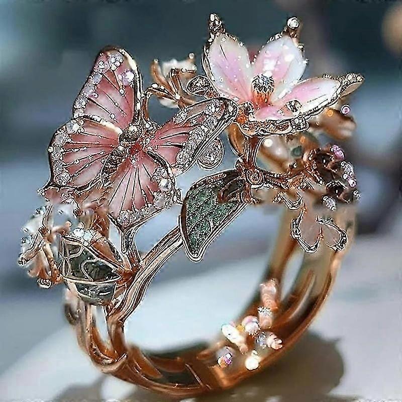 Butterfly Flower Ring, Enamel Flower Butterfly Ring for Women