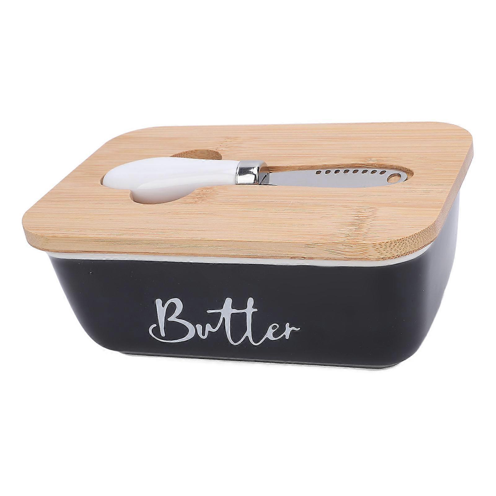 Butter Dish Rectangle 500ml Black Ceramic Stainless Steel Tray