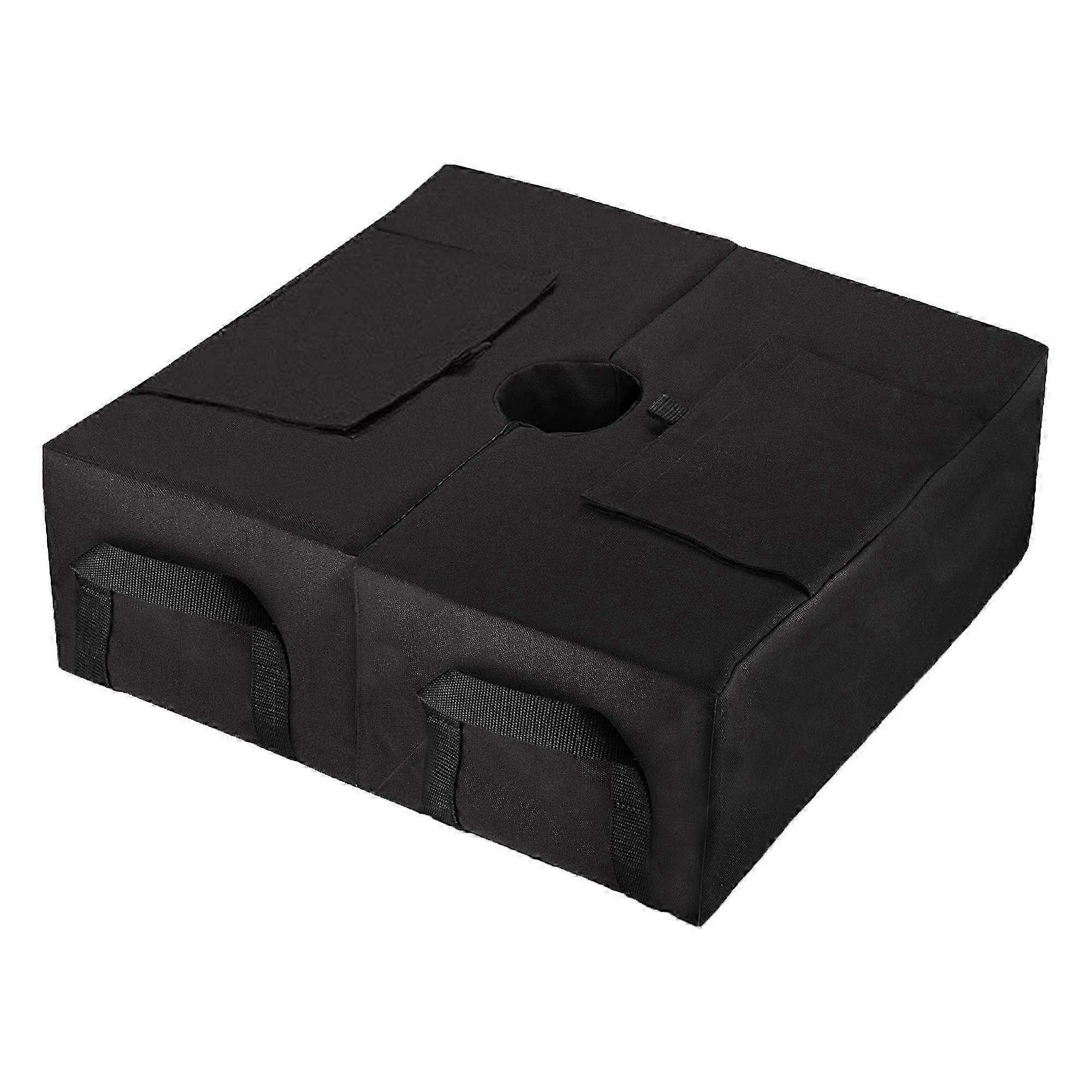 **Durable Material:** Constructed from strong and sturdy 900D Oxford fabric with a PVC coating, this material resists cracking, tearing, and corrosion. It is also sunscreen-proof, waterproof, heat-resistant, and able to withstand cold and frost. Furthermore, it is easy to clean. **Specially Designed:** This product features two detachable, ergonomic weight bases that are durable, easy to set up, and portable. They can be folded and stored when not in use. **Large Load Capacity:** These sandbag umbrellas can hold up to 50kg of sand each when fully filled, preventing your umbrella from tipping over, even in windy conditions. This helps to protect your family from potential injury. **Easy to Use:** The weight umbrella is designed for easy filling. The wide opening allows for quick filling of the sandbag, and it can be easily placed around a composite pole. **Please note:** Sand is not included.