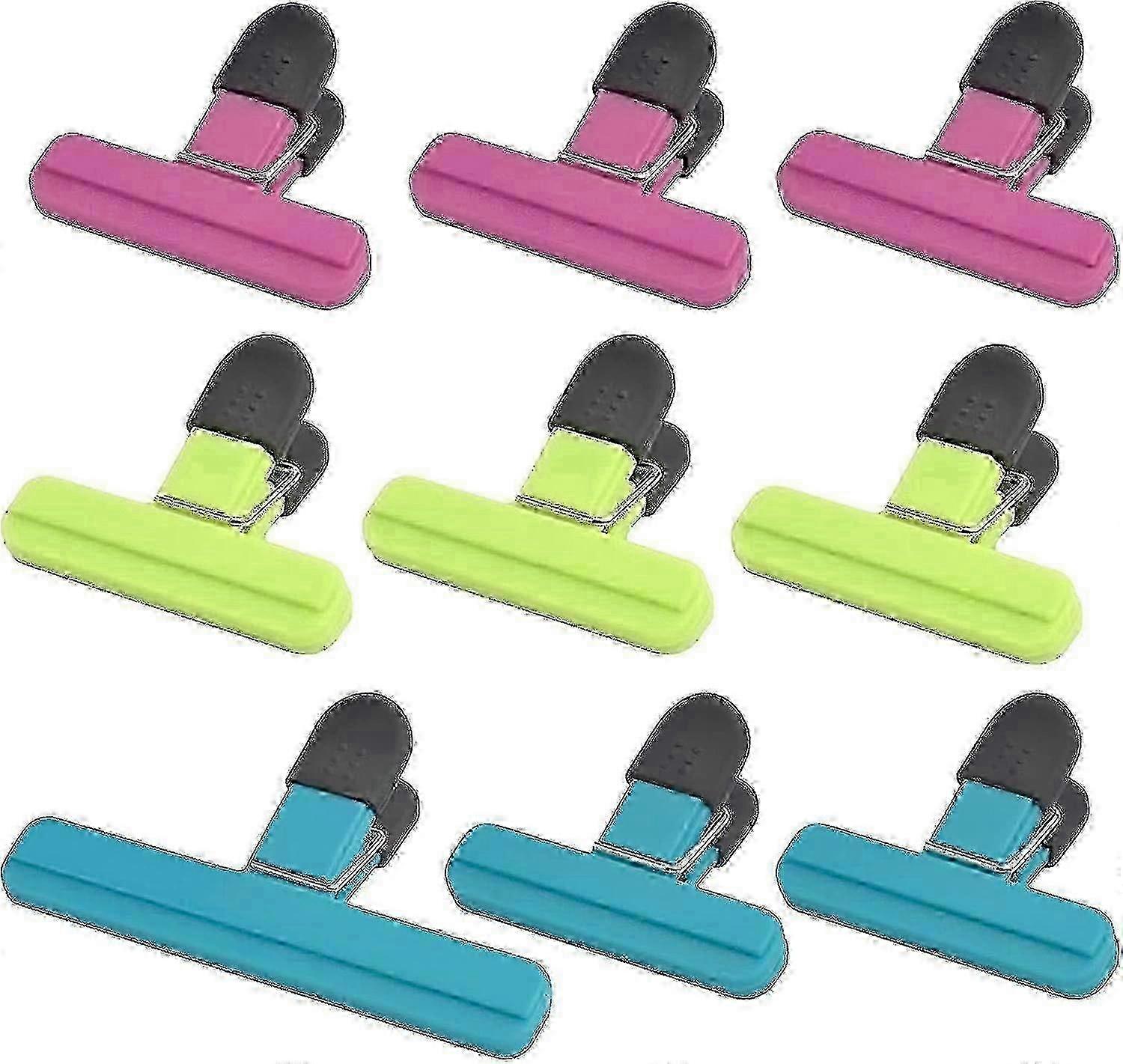 Bag Clips, 9 Food Bag Clips, 3 Colours Sturdy Food Clips, Reusable Plastic Clips For Home, Kitchen A