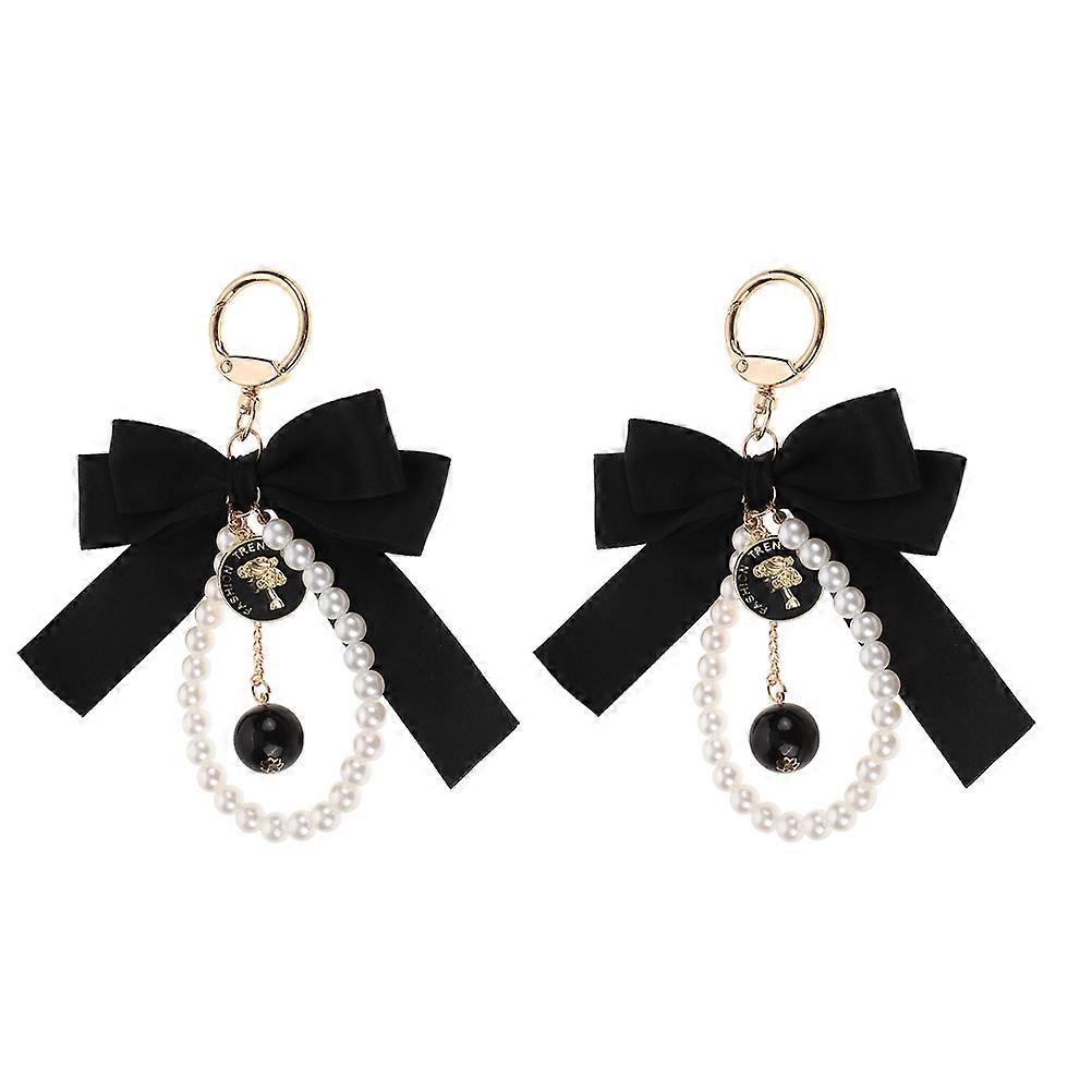 Bag Pendant Faux Pearl Keychain Bowknot Pendant Aesthetic Hanging Charm For Special Occasions 2Pcs