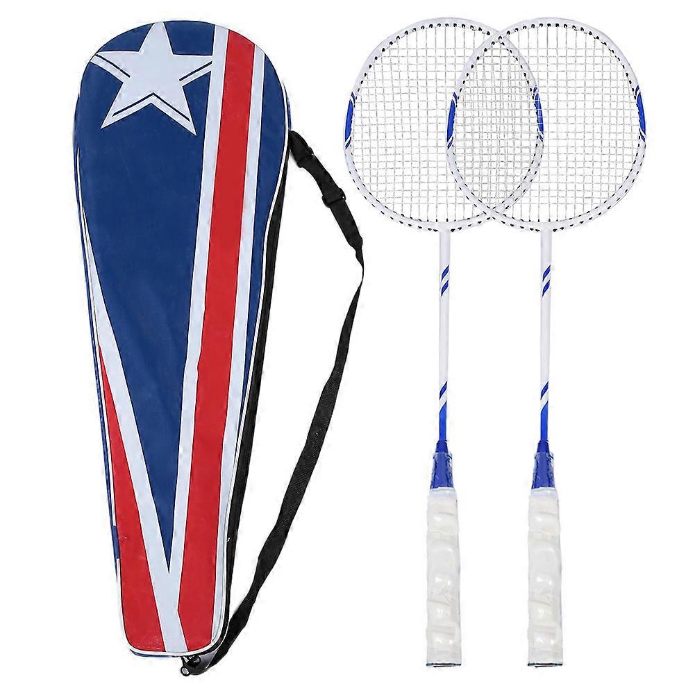 A Pair of Blue Children Aluminum Alloy Badminton Racket Training Racquets Accessory with Bag