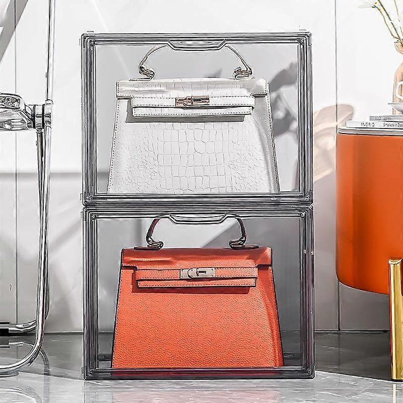 Luxury Design:This bag storage box boasts a luxurious design, perfect for adding a touch of elegance to any room. Its transparent glass door allows for easy access to your items while maintaining a stylish aesthetic. Dust-Proof Feature:The dust-proof feature of this storage box ensures your belongings remain clean and pristine. It's ideal for storing expensive jewelry or other items that require special care. Versatile Use:With its versatile design, this storage box can be used in various settings such as home, office, or even as a travel memento. It's a practical and stylish storage solution. Transparent Glass Door:The transparent glass door of this storage box allows you to easily see your items without having to open the lid. This feature saves time and prevents unnecessary dust from entering the box. Gift-worthy Item:This storage box makes for a gift for travel souvenirs or other special occasions. Its luxurious design and practical functionality make it an ideal present.