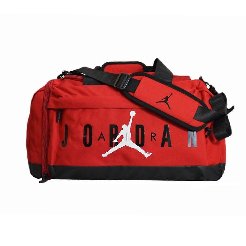 Aie Jordan Jam Velocity Duffle Bag One Size RedThe Air Jordan Duffle Bag is a functional, durable bag perfect for training or traveling.Made of high-quality materials, the product is durable and resistant to everyday use.The zippered, spacious main compartment provides enough space for clothes, sports shoes, and training equipment. The SM0168-R78 model features numerous interior pockets for keeping your belongings organized and neat.Exterior pockets provide quick and easy access to essentials.The reinforced bottom protects against impacts, shocks, and spills.The padded, removable shoulder strap and comfortable handle allow you to carry the bag without discomfort.The bag is red with a white Jumpman logo and a large, black Air Jordan lettering on the front. Specifications:Brand: Aie JordanModel: Duffle BagMaterial: 100% polyesterDimensions: 55 x 32 x 26cmColors: Red / BlackManufacturer code: SM0168-R78