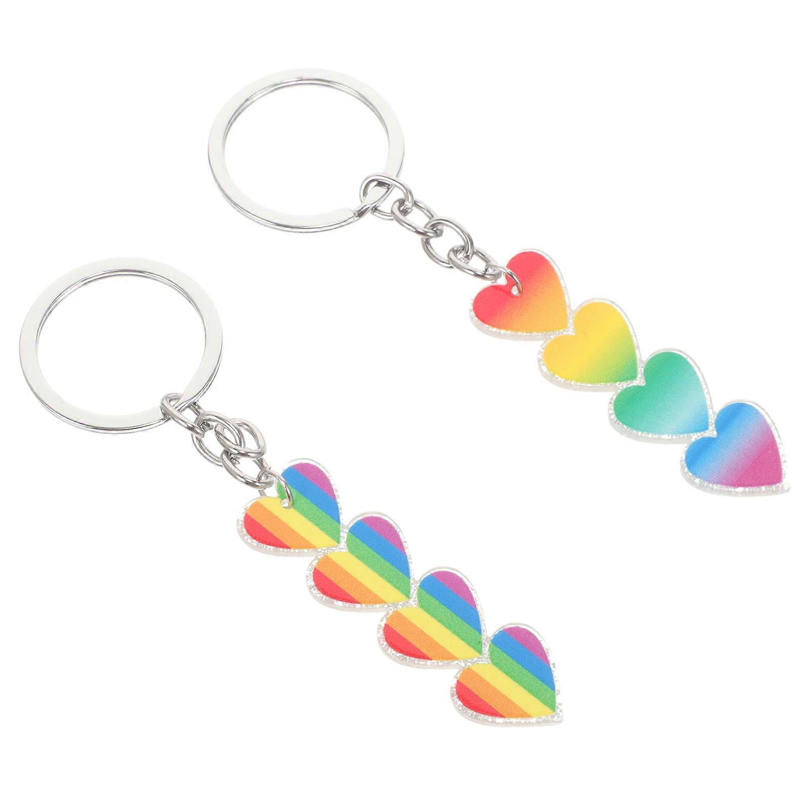 Assorted Color Metal Key Chain with Heart Shape Decorations for Backpack or Purse 2 Pieces