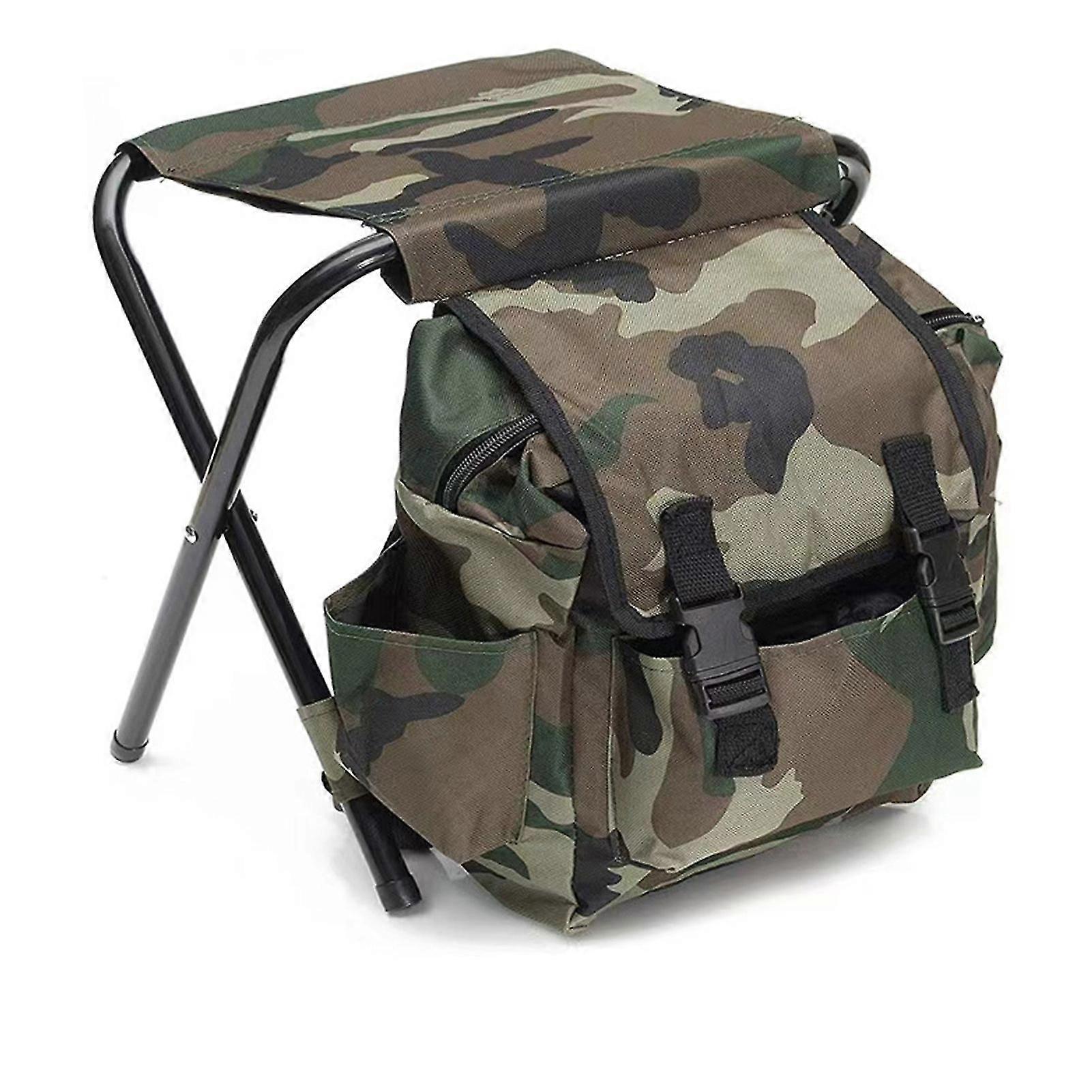 Backpack Chair 600D Oxford Cloth Reinforced Steel Pipe Large Storage Capacity Folding Stool for Fishing Camping
