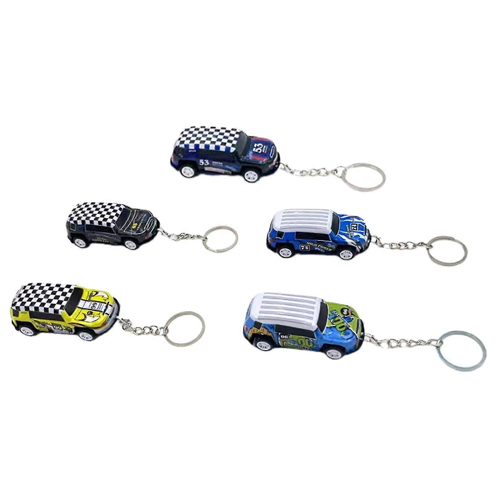 5pcs Mini Car Keychains With Buckle Miniature Graffiti Print Vehicle Toy Alloy Model Ornament 1:64 Scale Racing Car Model Pendant Pull Back Toy