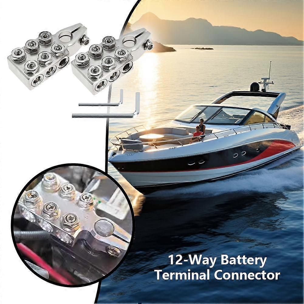 Battery Terminal Clamps 2/4/6/8/10AWG Gauge 12-Way Connectors Positive Negative