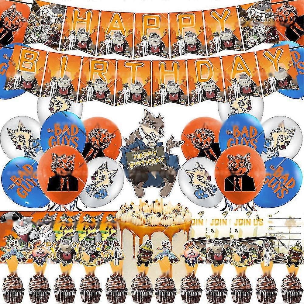 The Bad Guys League Birthday Party Decor Banner, Cake Toppers, Cupcake Toppers, Balloons Supplies Set