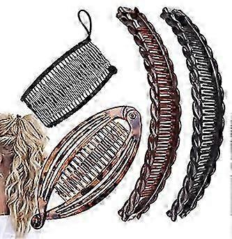 Banana Hair Clip 4 Pcs,Banana Fish Hair Clips for Women Banana Clip Double Comb Long Hair Clips Ponytail Hair Comb Banana Hair Comb for Thick Hair Sli