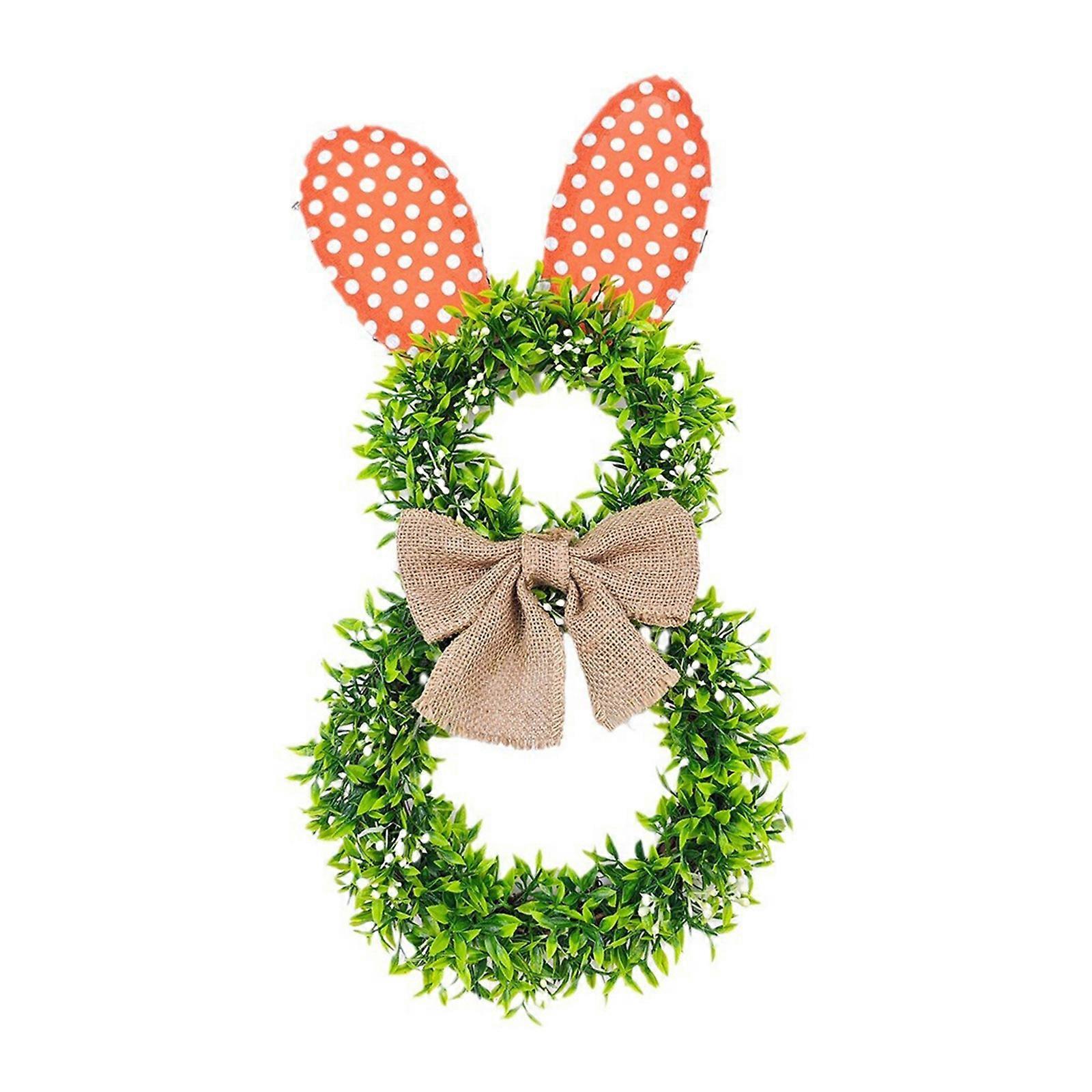 Bunnys Ears Decorated Wreath Colorful Rabbit Garlands Easter Flower Rings Bunnys Bow Wreath Door Decoration Ornament