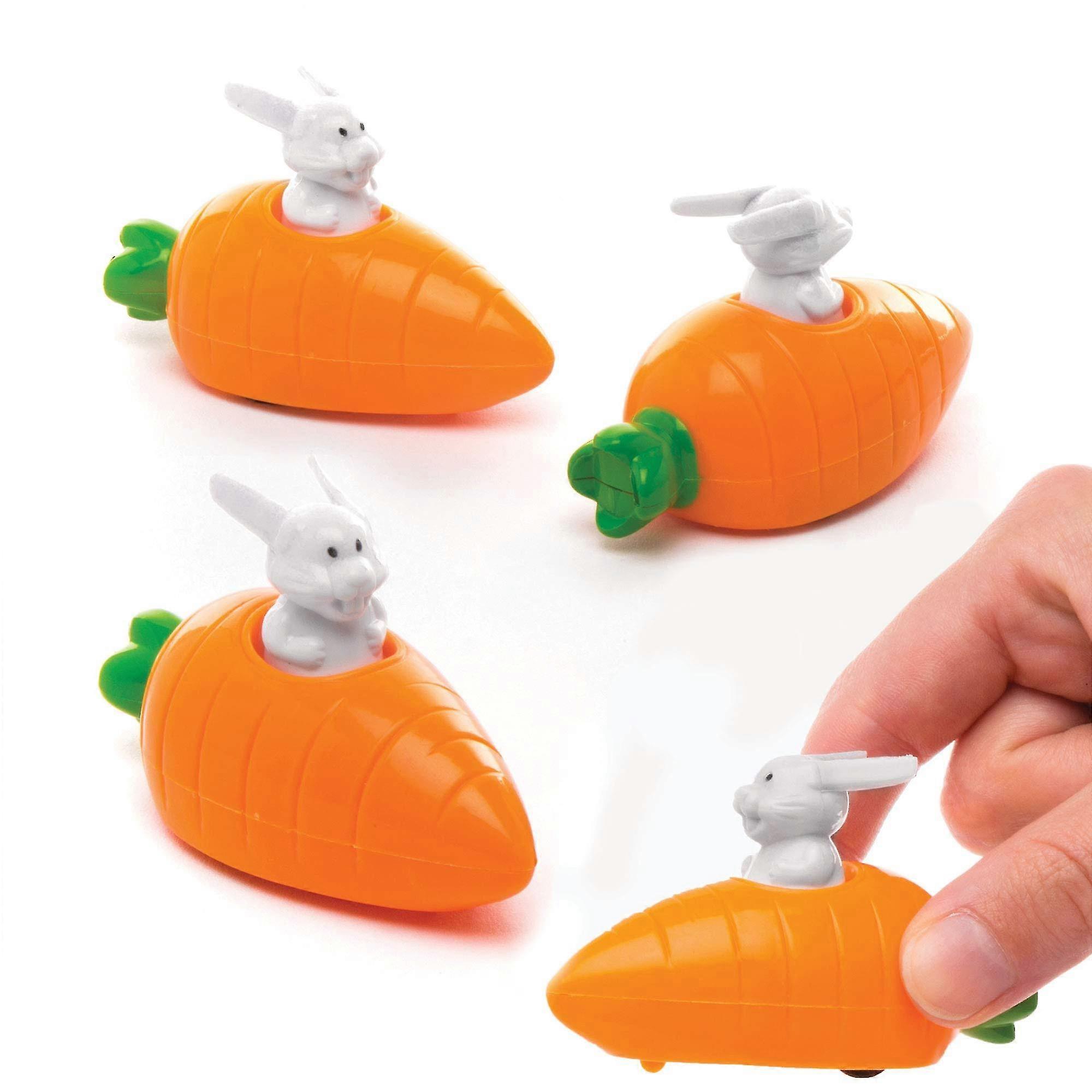 Bunny & Carrot Pull Back Racers (Pack of 4) for Kids Easter Party Bag Fillers or Gift Ideas,7.5x 3.5 x 3.5 centimeters