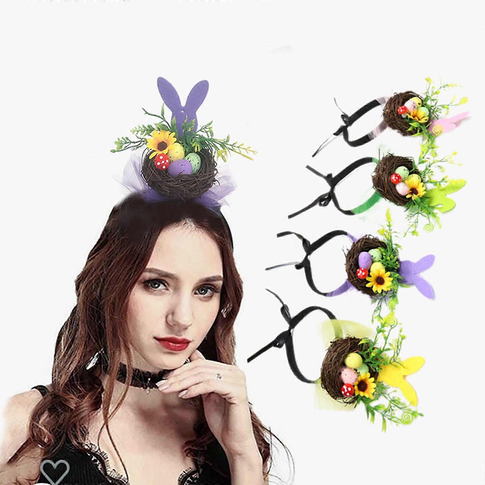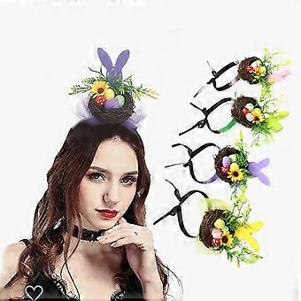 Bunny Cosplay Hairbands Plastic Bird's Nest Rattan Party Headdress Baby Girls For Easter Headgear