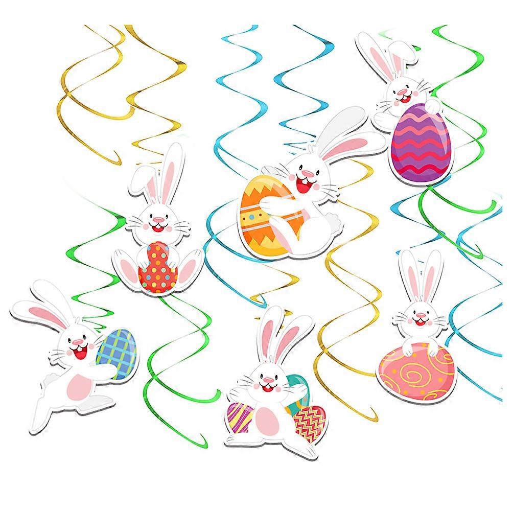 Bunny Hangable Ornaments Easter Party Spiral Hanging Pendants Decorations Home Spring Decor Assorted Color 6x11x0.5cm 18Pcs