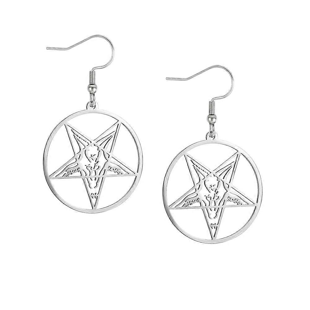Baphomet Satanic Goat Head Earrings Inverted Pentagram Stainless Steel Drop Dangle For Women Gothic Jewellery Pagan