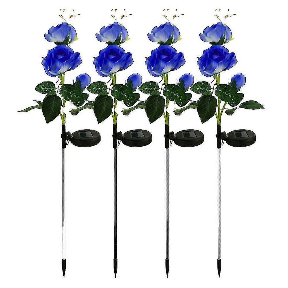 4pcs Solar Lights With Rose Flowers Lights, Landscape