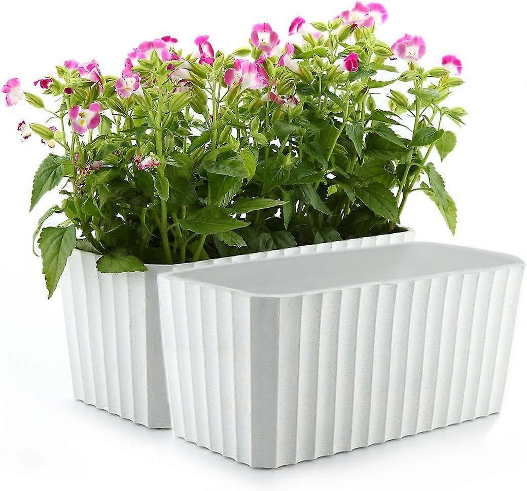 Elegant Window Box For Balcony, All-Weather Resistant Plastic Stone Composite Self-Irrigation System With Water Reserve And Auto-Overflow For Home