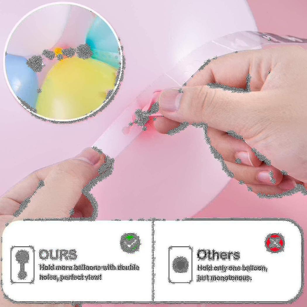 Suitable for making balloon garland, DIY balloon arch or bunting.VARIETY STYLES: The balloon decorating strip kit can be used to connected various sizes of latex balloons, which can make different types of balloon arches and garland, bring you a variety of beautiful styles.PROFESSIONAL BALLONS SCENE DESIGN: Use this upgraded balloon arch kit to help you get more professional party decorating scene layouts.How to use:All the balloon tape you received have precut lining, you need to punch it out first, but just clear and use one by one, not clear all holes one time.After clear the holes, you can stick an end of balloon into the hole.