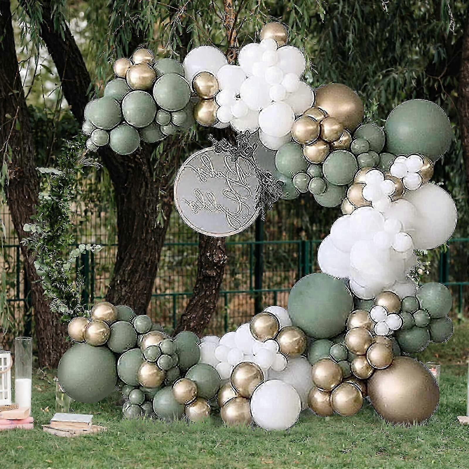Balloon Arch Kit 137pcs Green White Gold Balloon Garland Kit Latex Party Balloons Party Decorationsr (Retro Green)