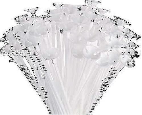 100 Pcs Balloon Sticks,plastic Thicken Durable Milk-white Sticks Holders With Cups For Party Decor