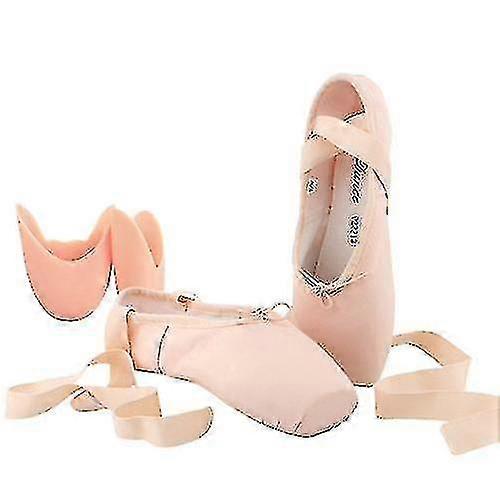 Ballet Pointe Shoes Girls Women Ribbon Ballerina Shoes With Toe Pads