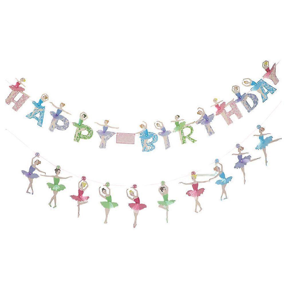 Ballerina Birthday Party Decorations Happy Banner Hanging Girls Assorted Color 300X35CM Decoration 2Sets