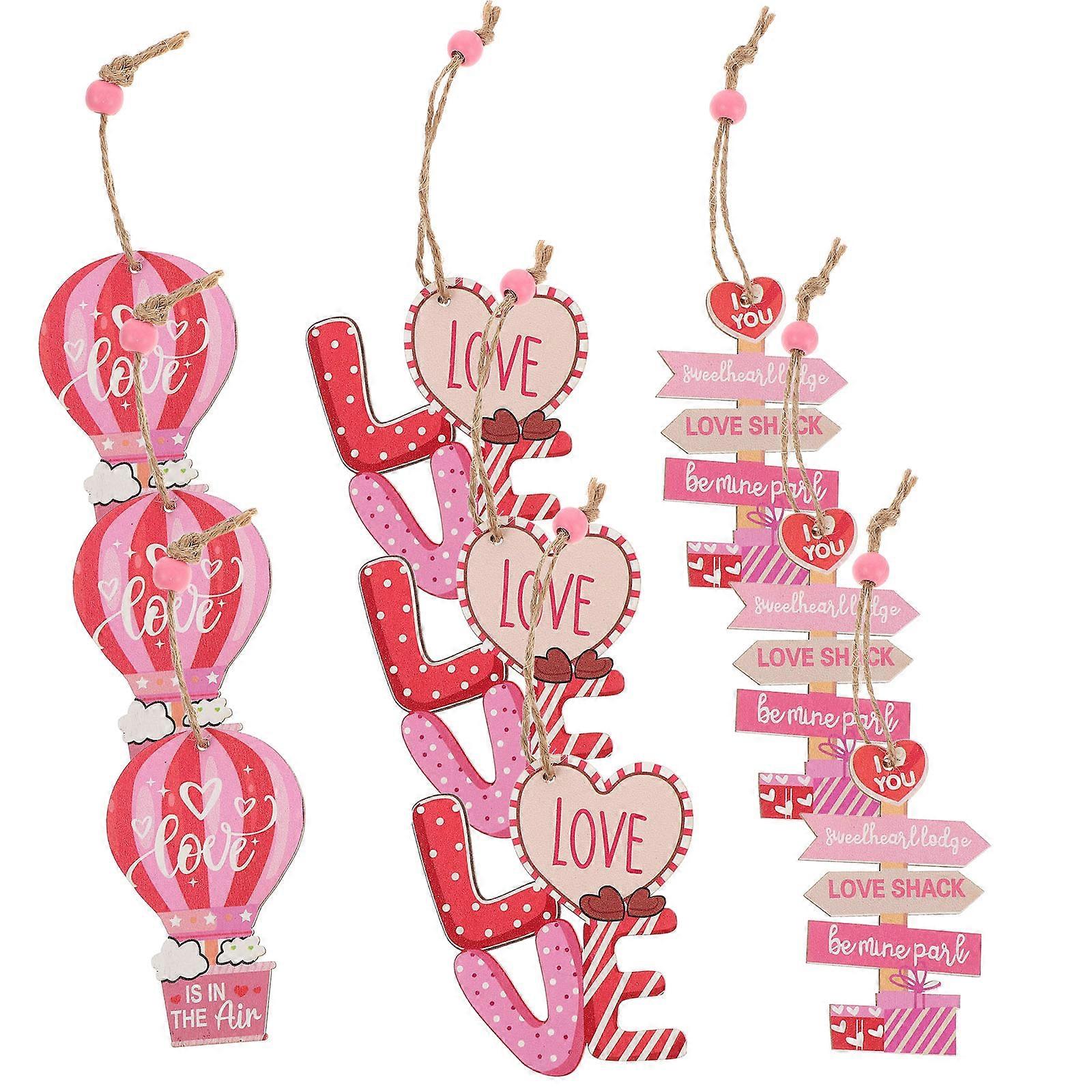 Hanging Valentines Decorations Vintage Wooden Heart Ornaments for Valentines Day Celebrations and Home Decor 3Pcs