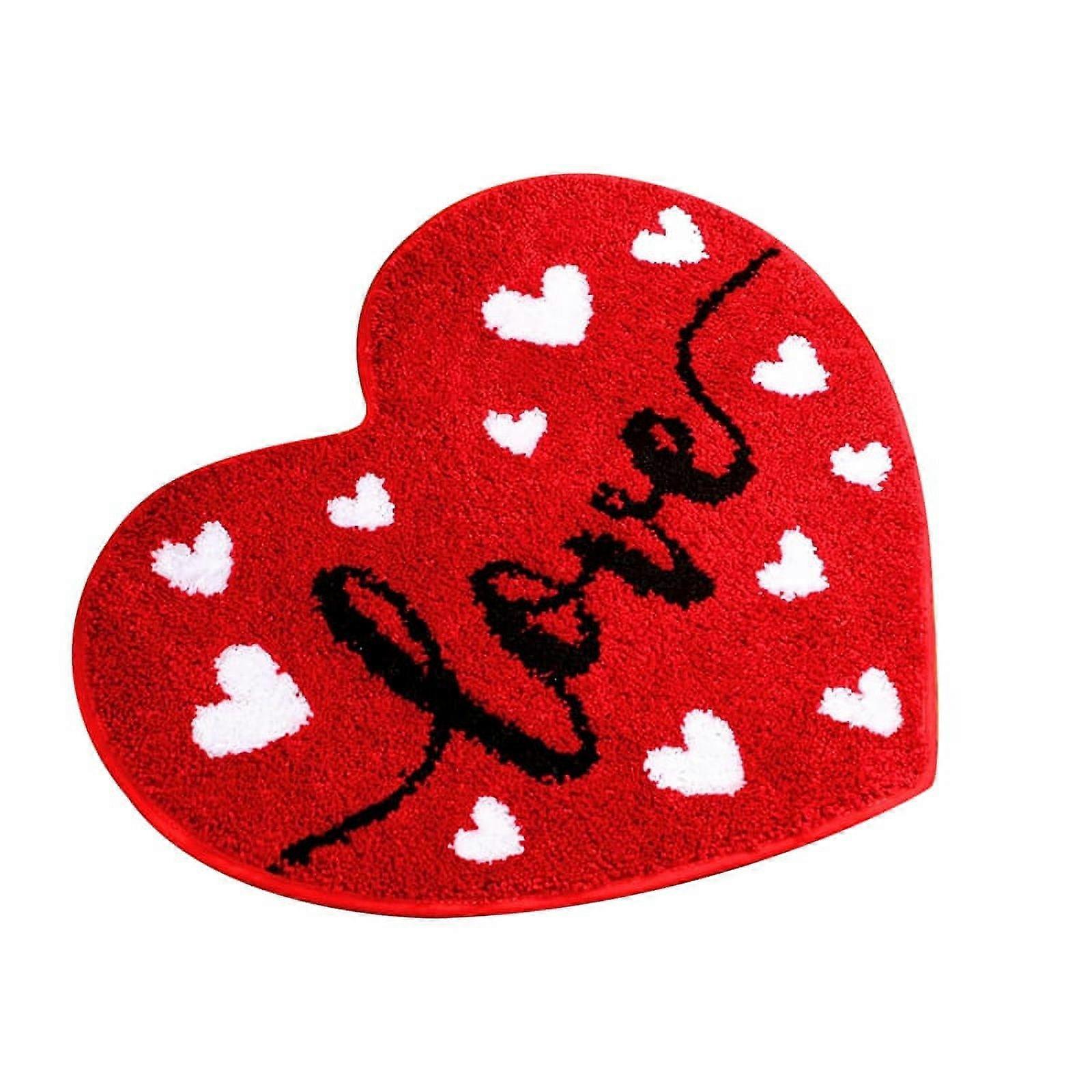 Cute Bath Rug: echoing the sense of Valentine's, the main color of this funky bathroom rug is red; The playful, heart shape, the passionate red hue and 'love' word, make this rug a charming addition to your bathroom decor