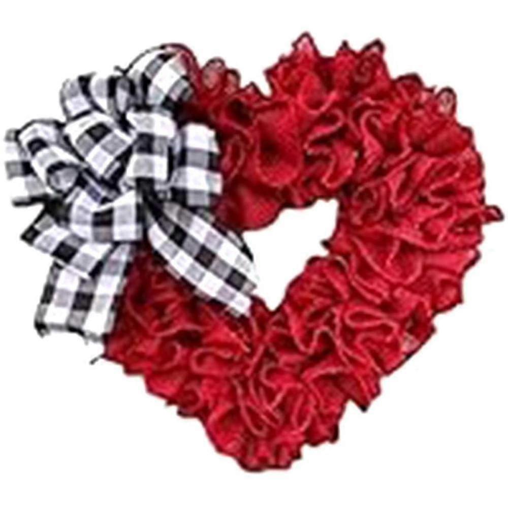 Valentine Day Heart Wreath Red Love Heart Shaped Door Wreath With Checkered Bow Romantic Fabric Welcome Sign For Wedding