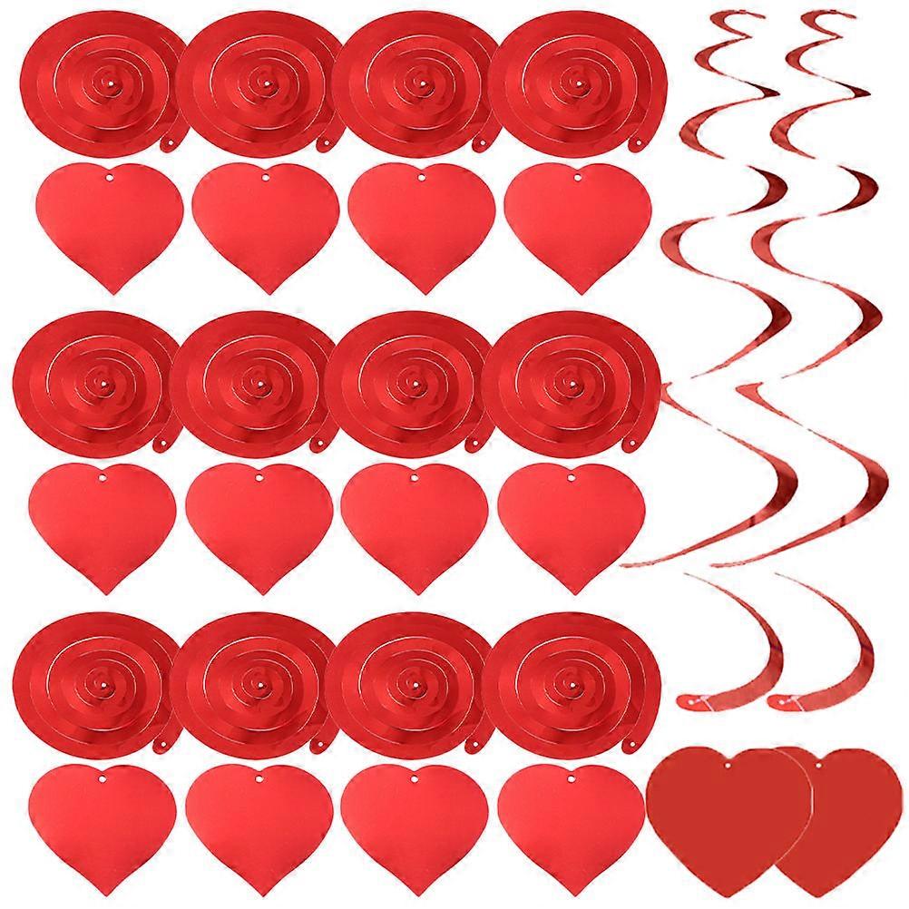 Valentine S Day Decor Heart Swirl Streamers Valentine Party Hanging Decorations Red 12.7x12.7cm Plastic Decoration 24Pcs