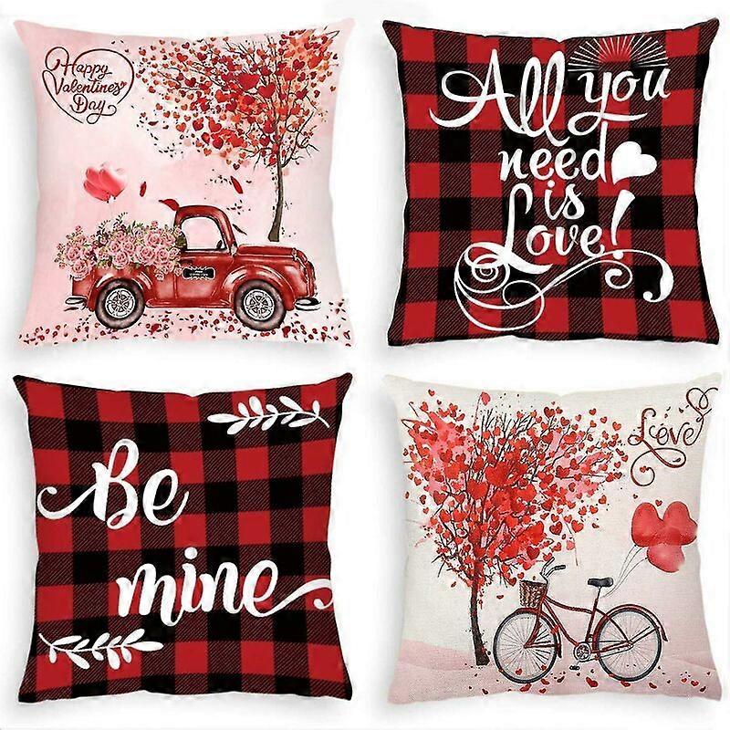 Valentine's Day Decor Decorative Throw Pillow Covers 18 x 18 Set of 4, Buffalo