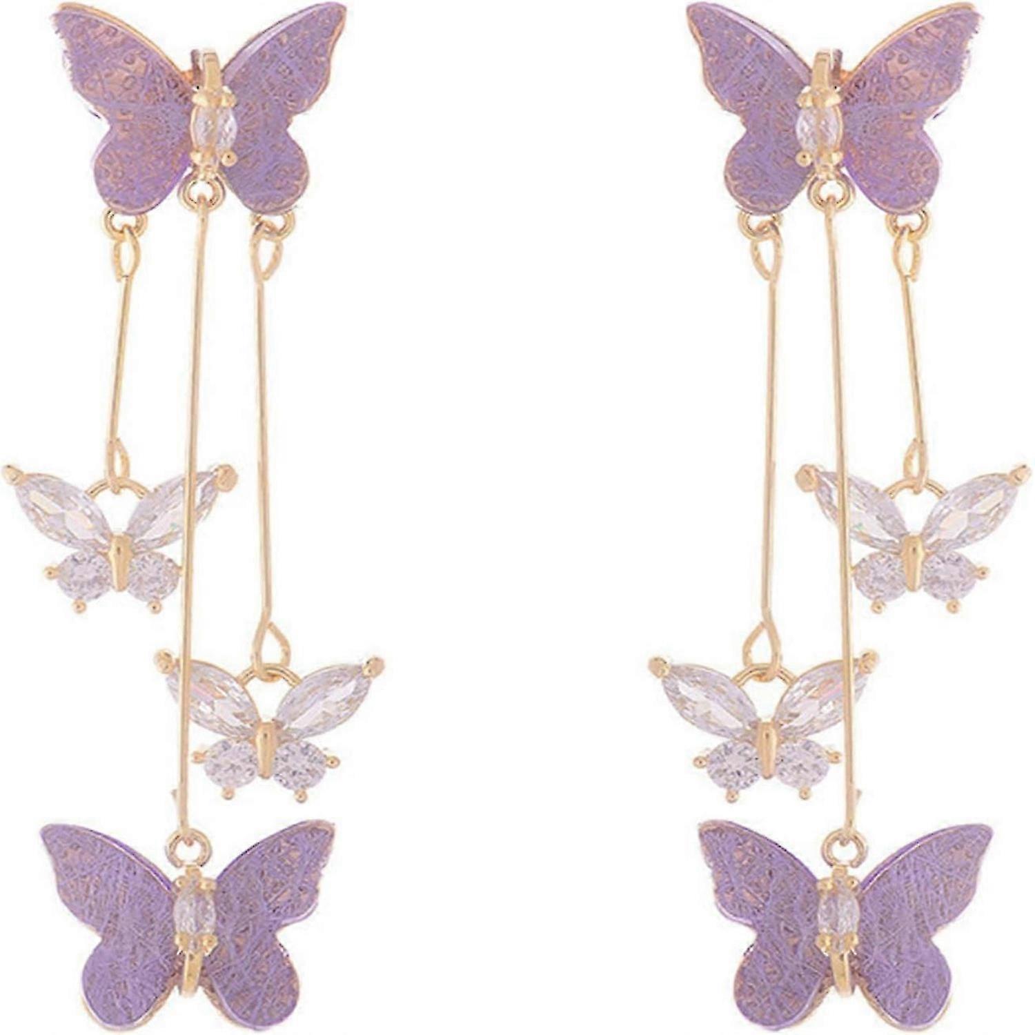 Valentine's DayElegant Butterfly Shape Long Tassel Crystal Rhinestone Cubic Zircon Lightweight Sweet Cute Drop Dangle Earrings for Women Wedding Party