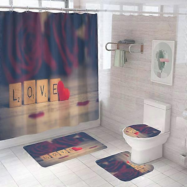 Valentine's Day Shower Curtains with Non-Slip Mat, Toilet Lid and Bath Mat, Waterproof