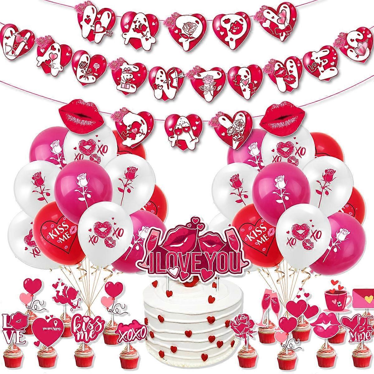Valentines Day Party Decoration Set 1 Banner +20pcs Latex Balloons+ 16pcs Cake Topper