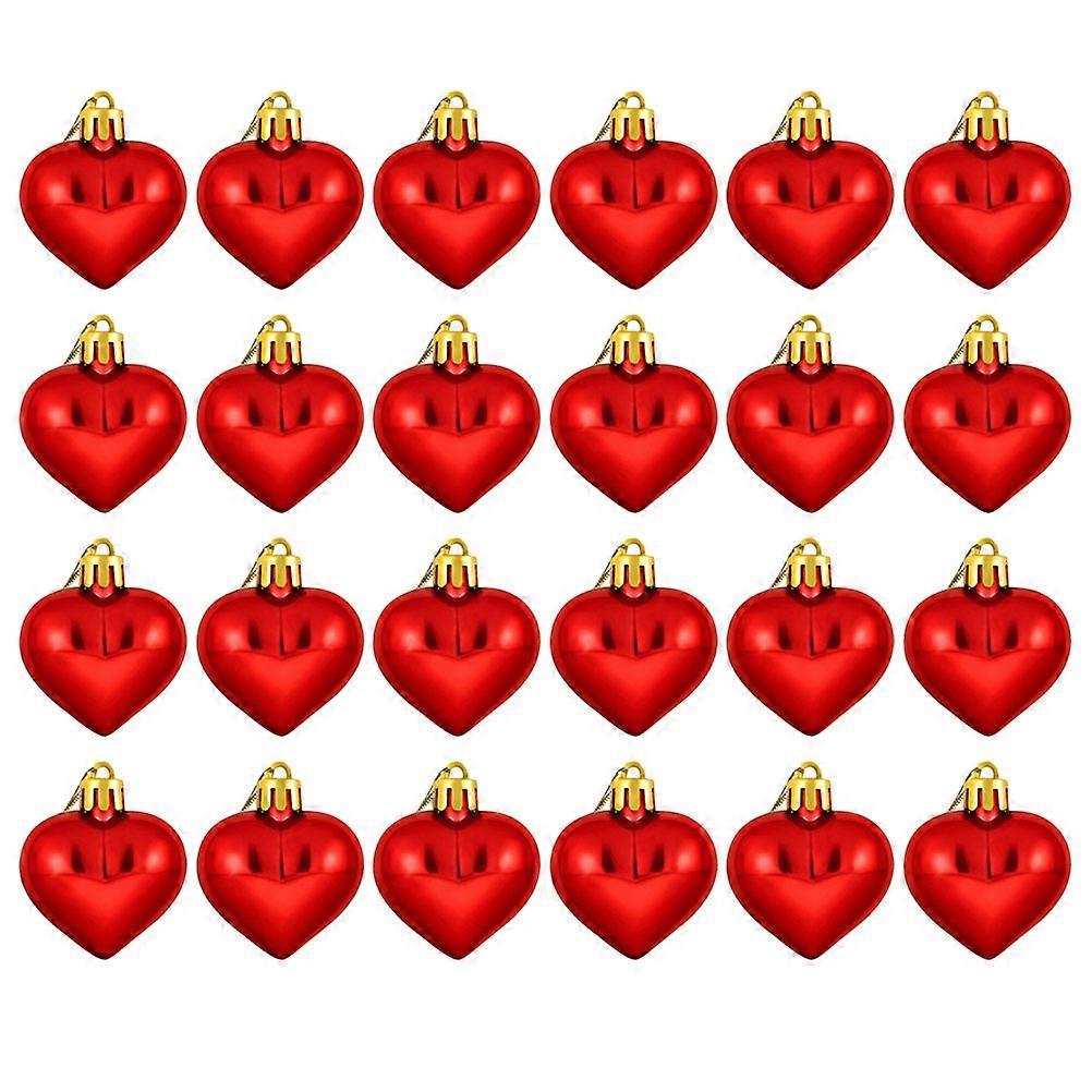 Valentine’s Day Heart Ornaments 24Pcs Classic Decorative Hanging Baubles For Weddings Parties Festivals In Red Plastic