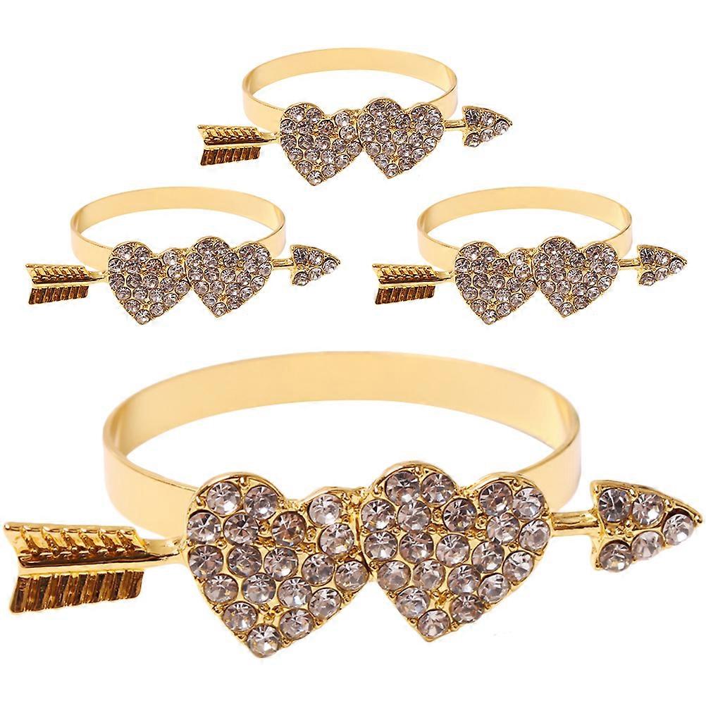 Valentines Day Heart Napkin Rings Metal Holder Buckles Golden 5.20X4.20X1.50cm Anniversary Decor 4Pcs