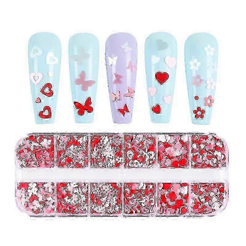 Valentine's Day Heart Nail Art Glitter Sequins 3d Nail Art Stickers Decals 12